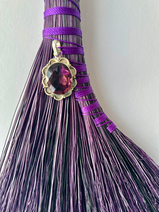 Purple Full Colour Hand Broom with Glass Pendant | Handcrafted Heritage Broom | Bristol Broomworks