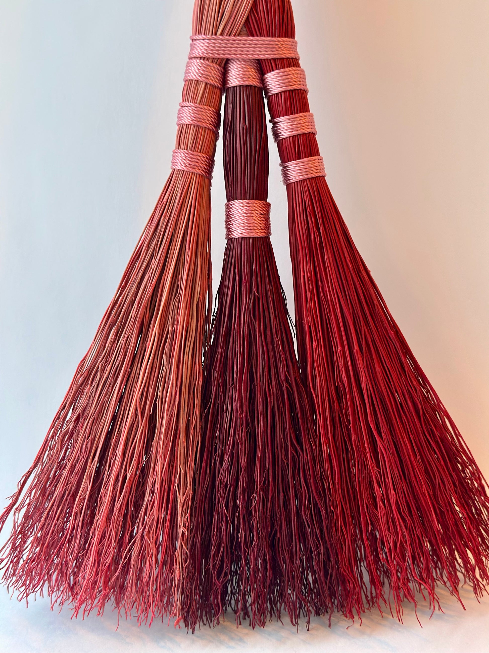 Pink Red Burgundy Full Colour Hand Broom | Handcrafted Heritage Broom | Bristol Broomworks